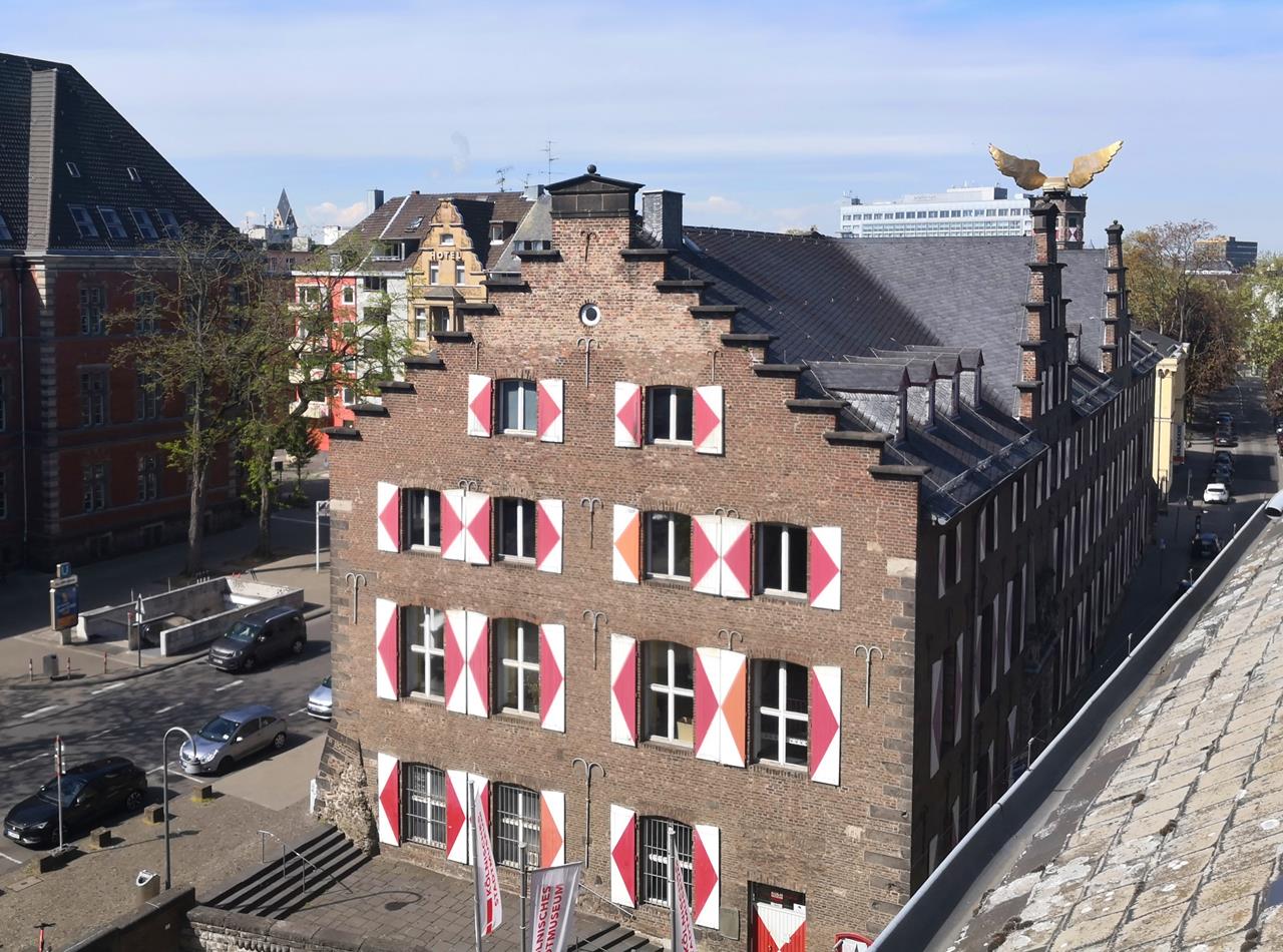 koeln_mai_2021_010_1280x950 ← Zurück Weiter → Balkonblick auf das Kölner Stadmuseum mit der Skulptur „Flügelauto“ von HA Schult