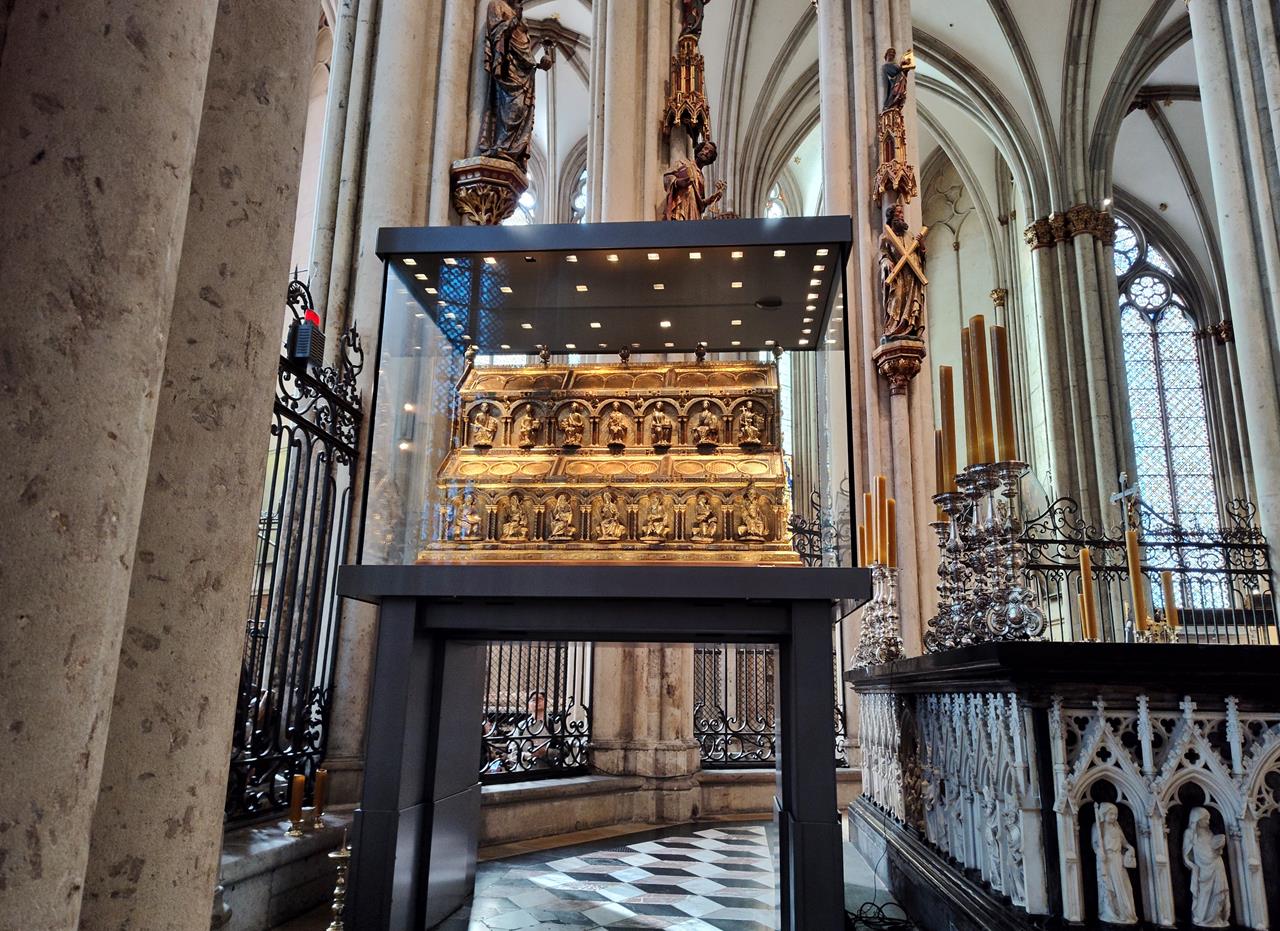 koelner_dom_mrz_2025_025_1280x931 ← Zurück Weiter → Schrein mit den Gebeinen der Heiligen Drei Könige hinter dem Hochaltar am Chorumgang
