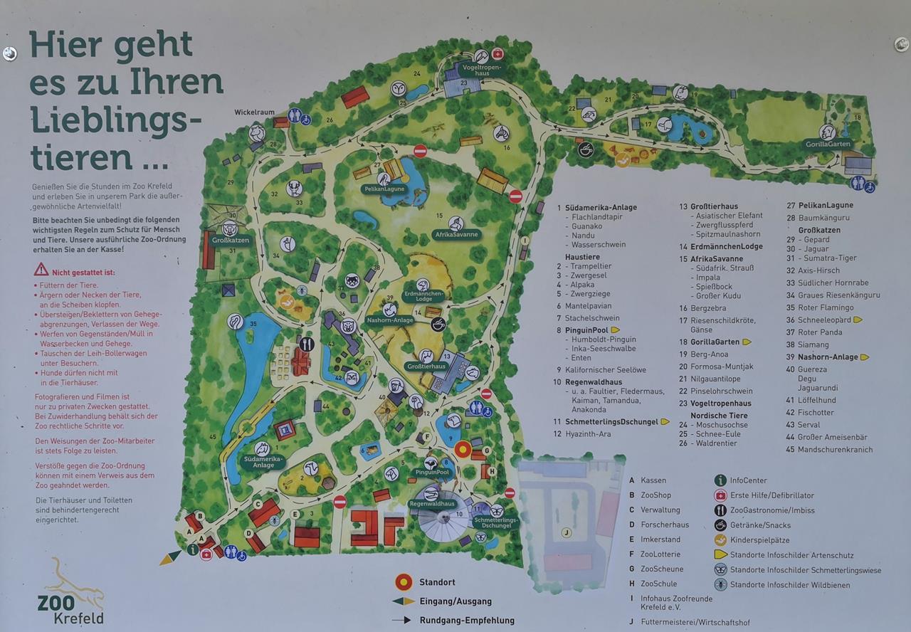 Übersichtskarte des Krefelder Zoos