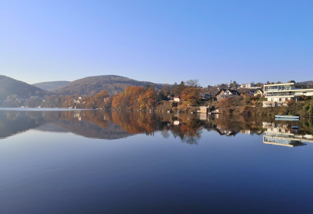 Blick von der Staumauer auf den Rur-Stausee Obermaubach