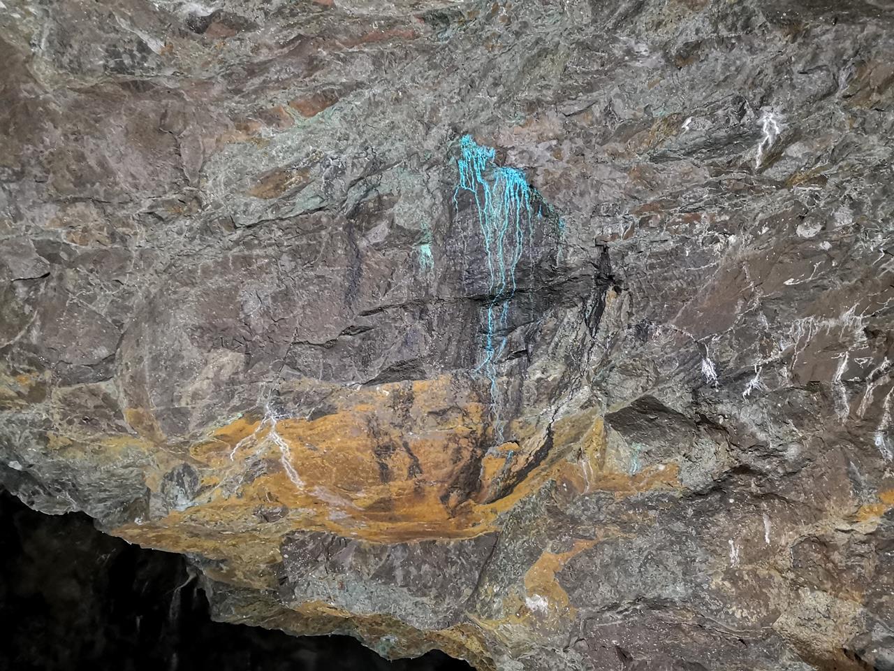 kupferbergwerk_fischbach_okt_2021_024_1280x960 ← Zurück Weiter → Farblich auffällige Ausfällung in der Wand