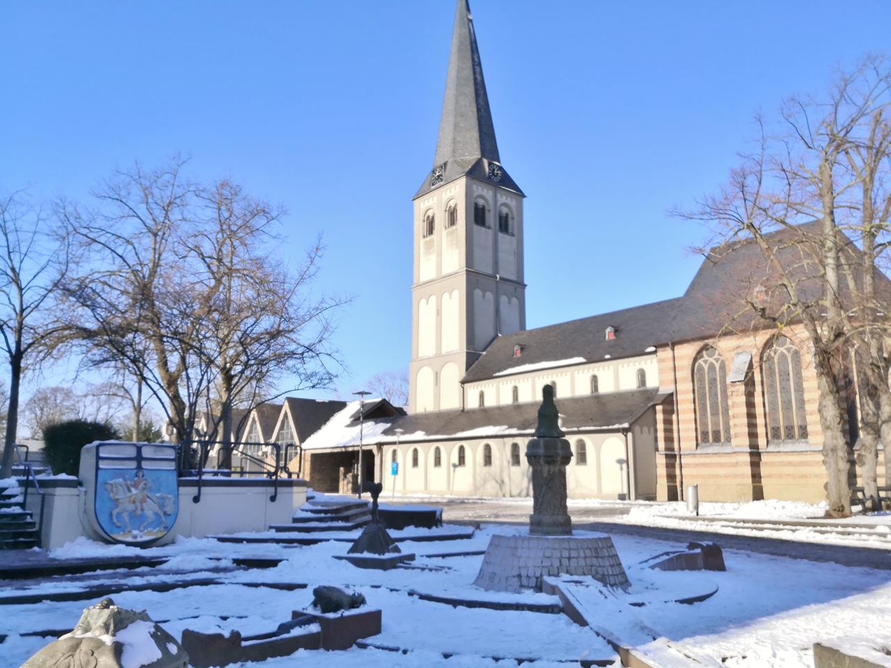 Marktplatz von Büttgen mit der St. Aldegundis Kirche