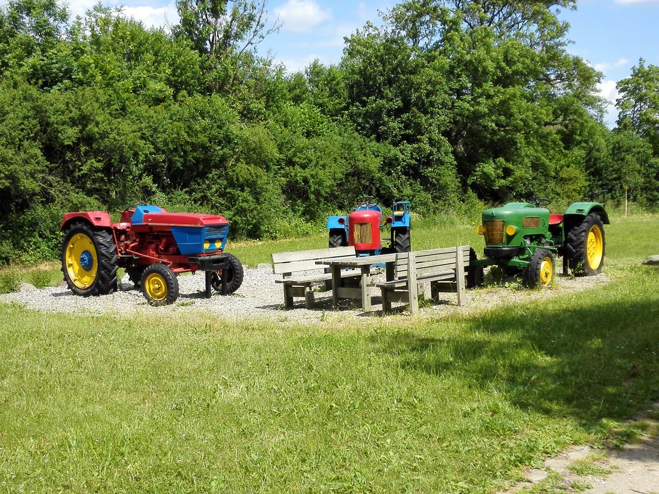 Alte Traktoren als Kinderspielplatz