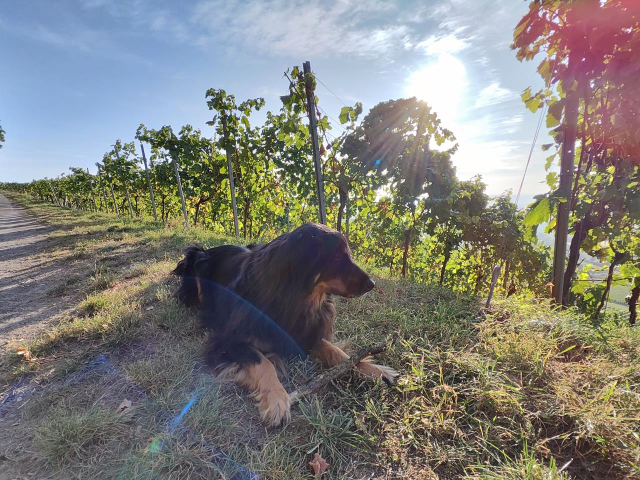 Doxi in den Weinbergen