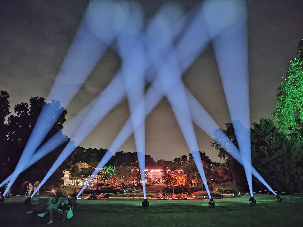 Große Scheinwerfer im Park von Schloss Dyck