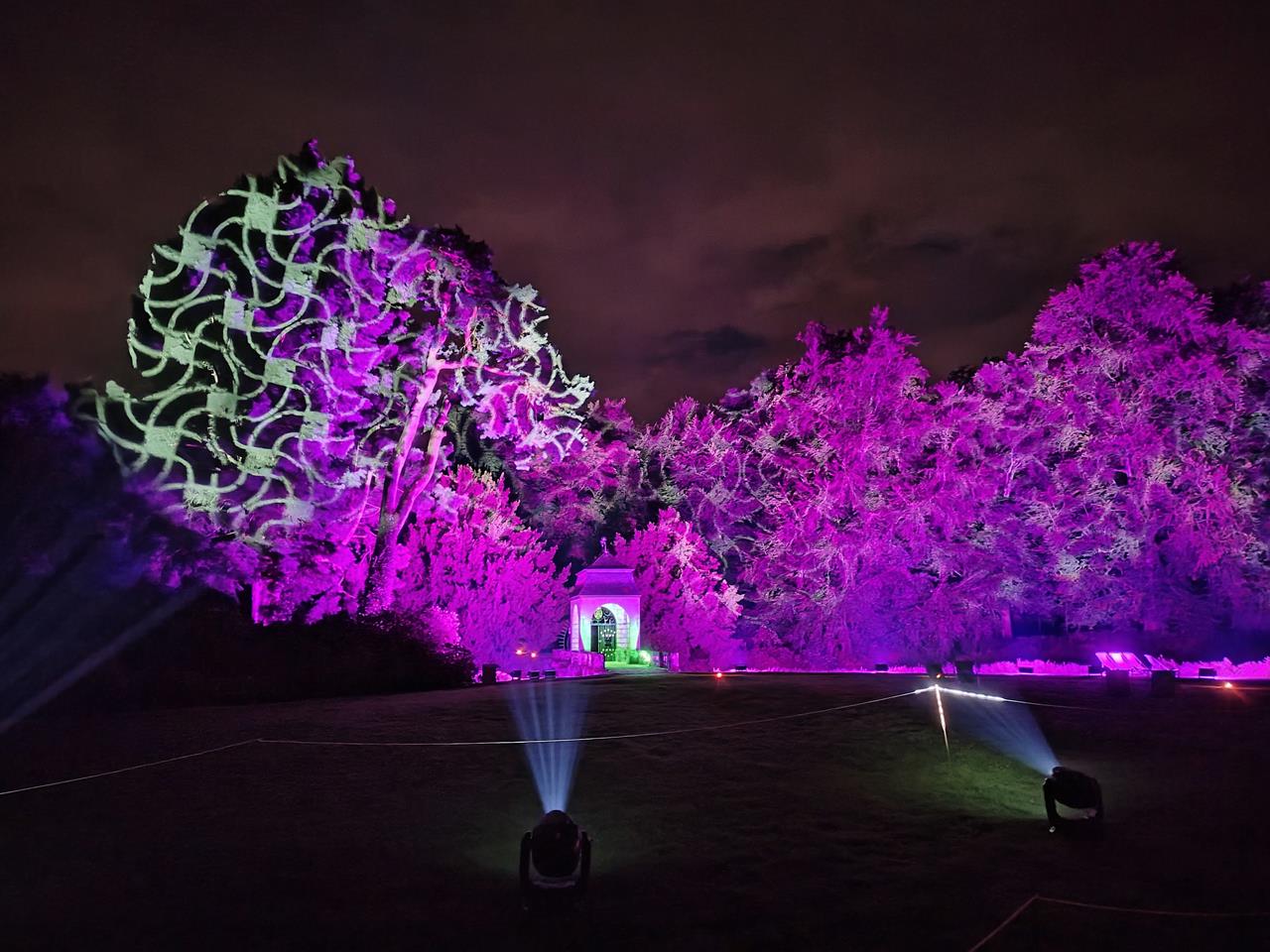 Mächtige alte Bäume im Scheinwerferlicht