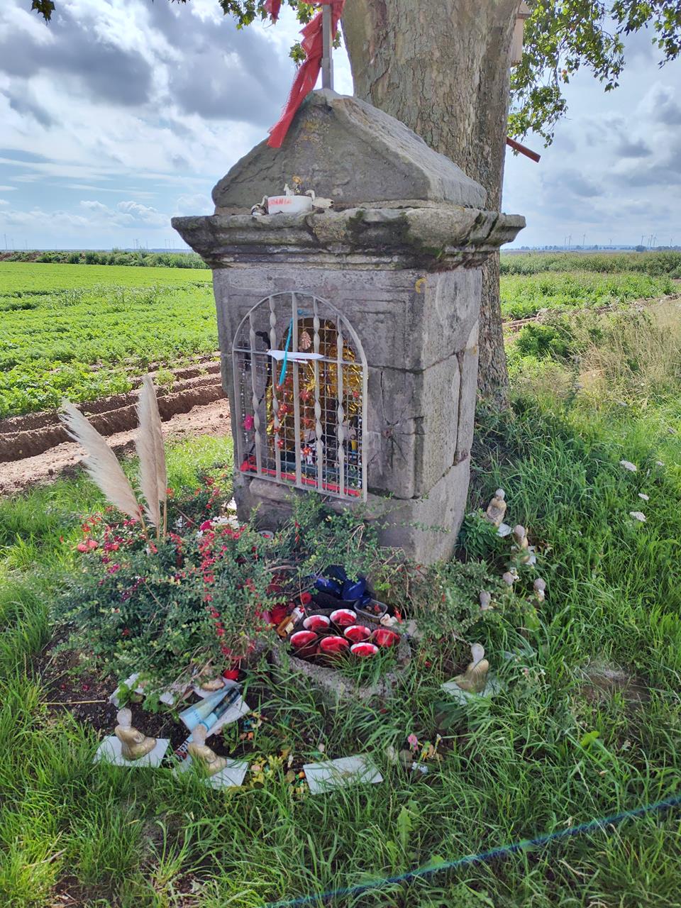 luetzerath_aug_2023_029_960x1280 ← Zurück Weiter → Auffällig dekorierter Kniefall am Rande des großen Lochs