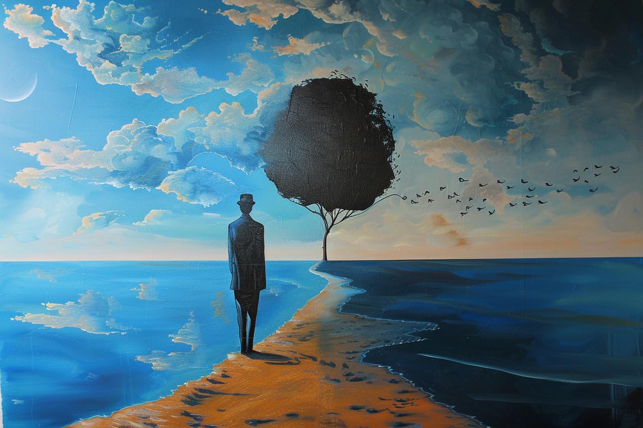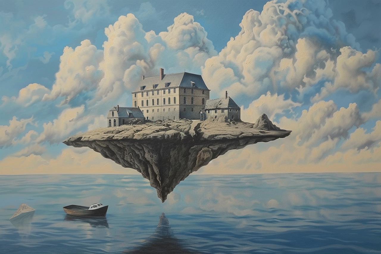 Neu aus der KI auf meiner Festplatte: Frisch imaginierte Bilder im Stile des Belgiers René Magritte (1898-1967), einem Meister des Surrealismus.