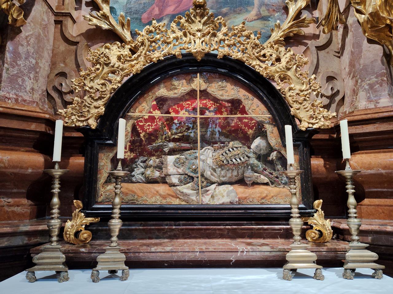 melk_mrz_2024_073_1280x960 ← Zurück Weiter → Goldgeschmückte Gebeine eines Märtyrers ais den Katakomben in Rom