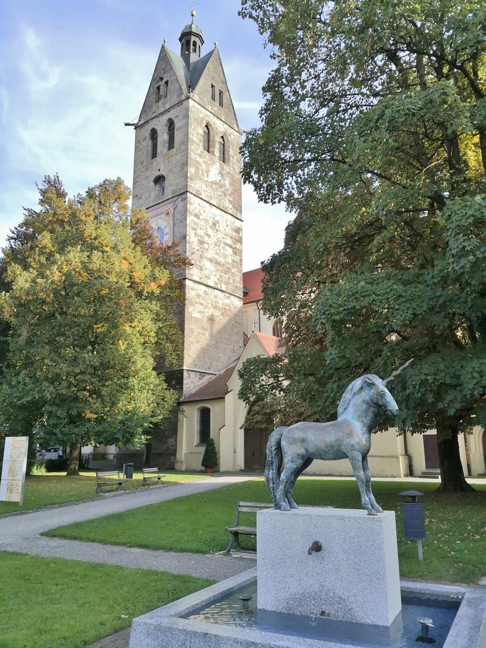 Einhornstatue vor der Pfarrkirche Unser Frauen