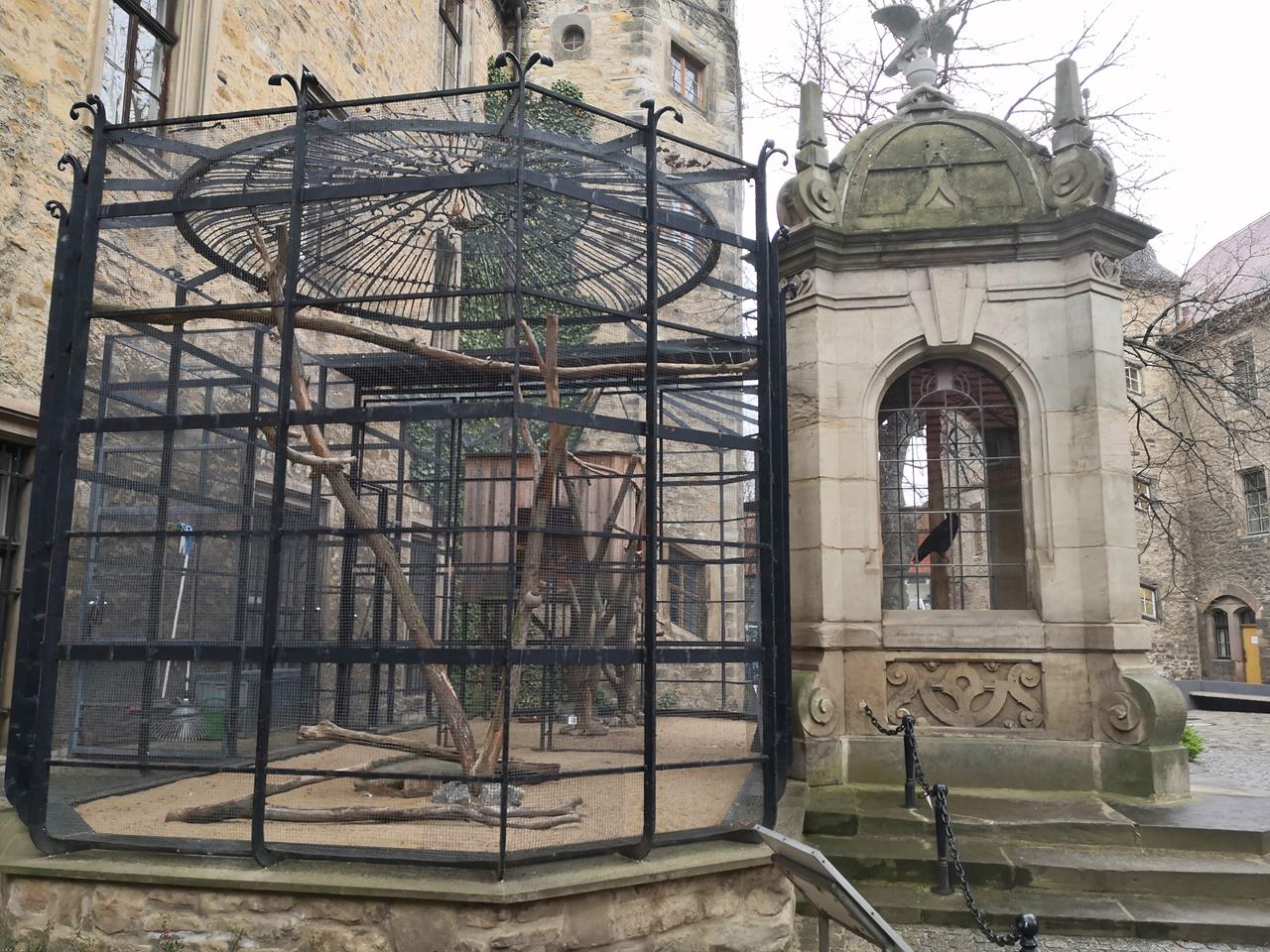 Voliere am Zugang zum Schloss