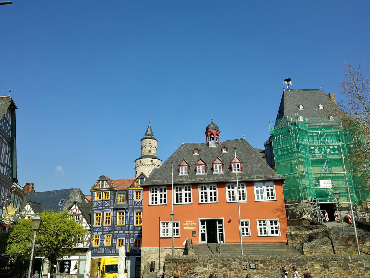 Rathaus und Schiefes Haus am Marktplatz vor dem Schloss