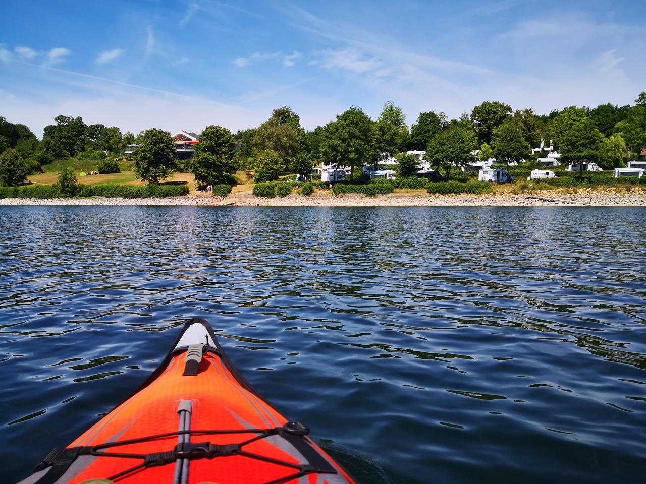 Mit dem Kayak vor dem Womo-Stellplatz