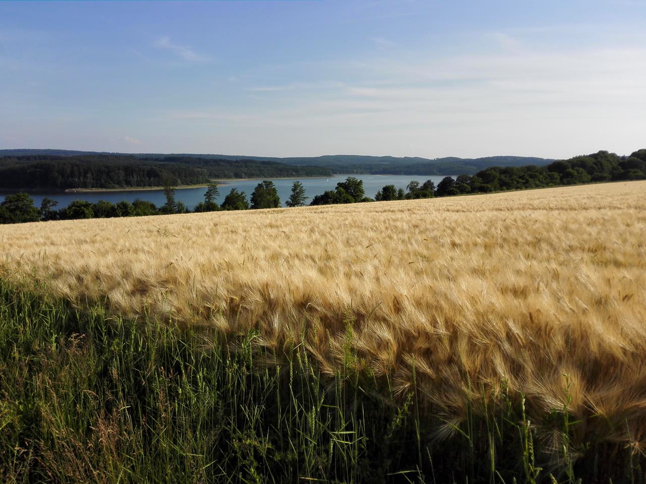 Bald ist Erntezeit: Kornfelder oberhalb des Sees.