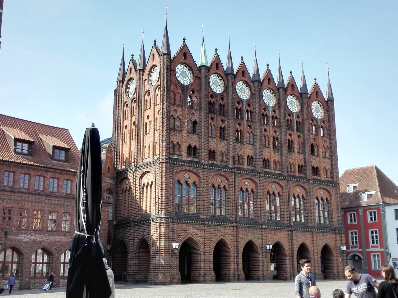Stralsund: Die berühmte Fassade des Rathauses am Alten Markt