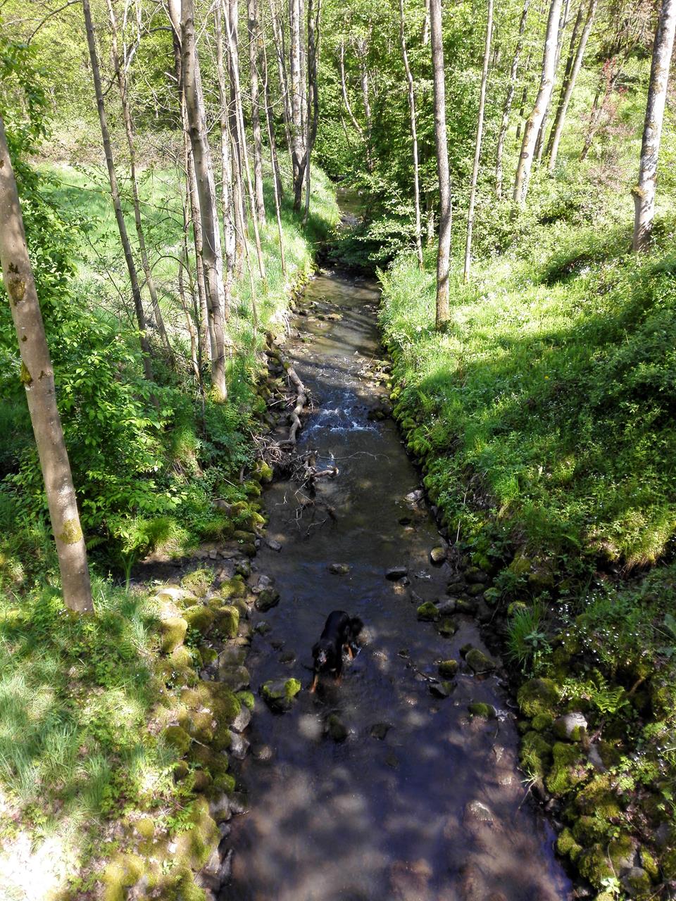 Doxi testet die Wasserqualität des Wahnbachs