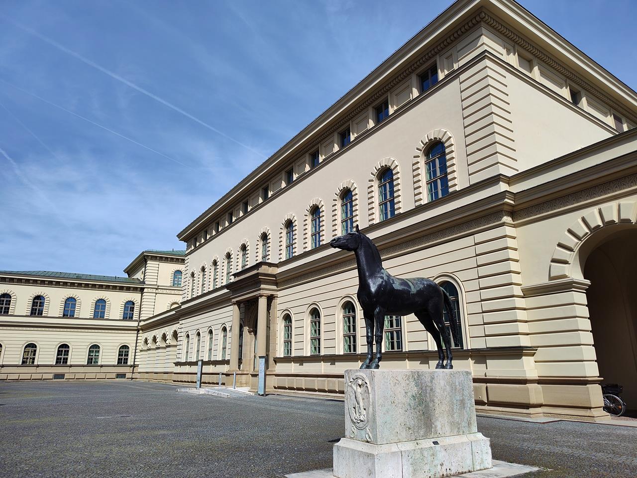 Pferdeskulptur vor dem Bayerischen Staatsarchiv