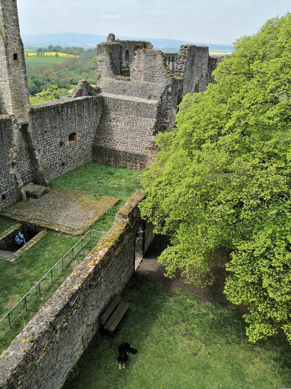 muenzenberg_mai_2022_044_960x1280 ← Zurück Weiter → Burgfräulein Doxi wartet unten auf mich, während ich den östlichen Bergfried erklimme