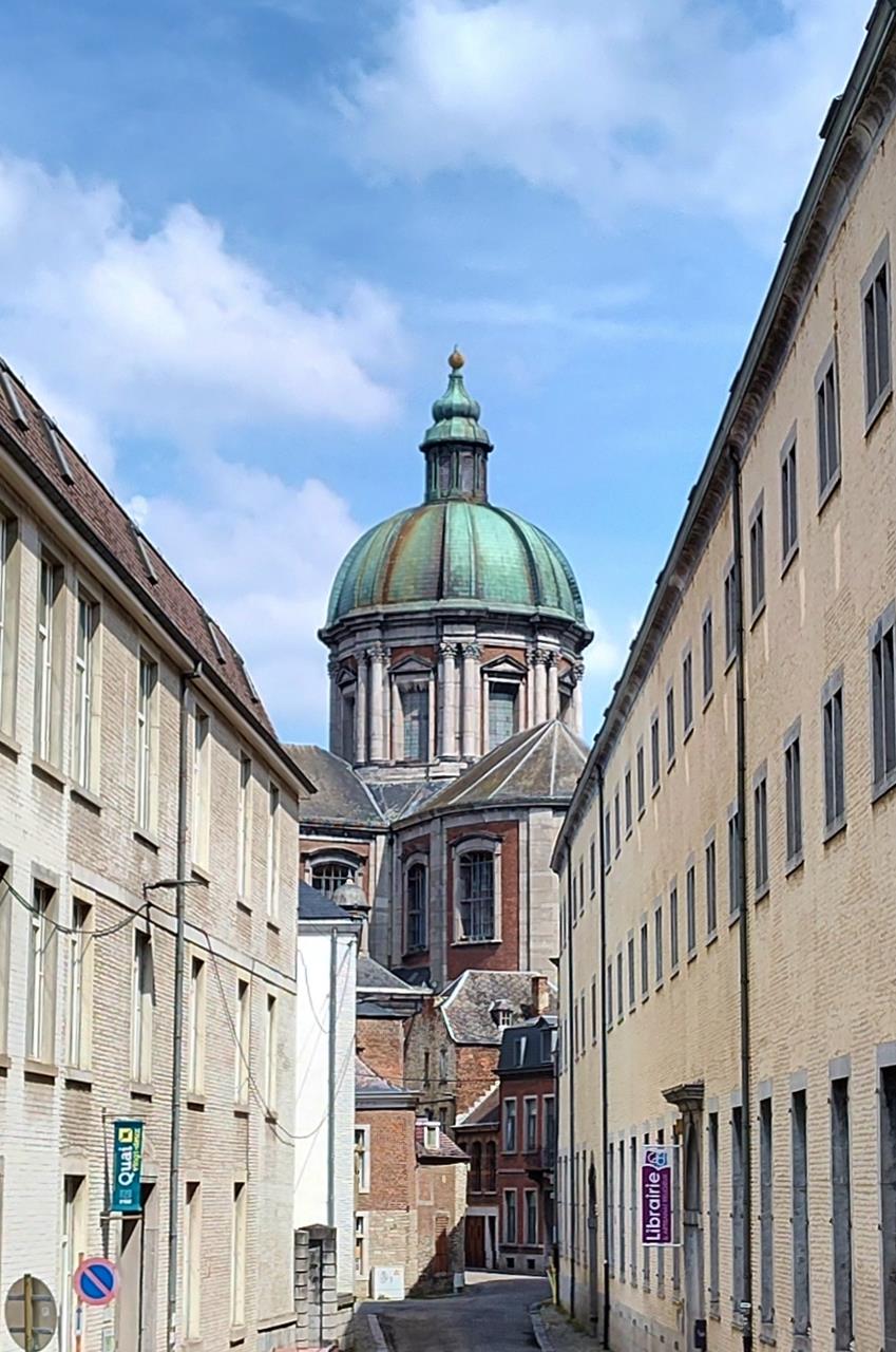 Blick durch die Gassen zur Kirche Saint-Aubain