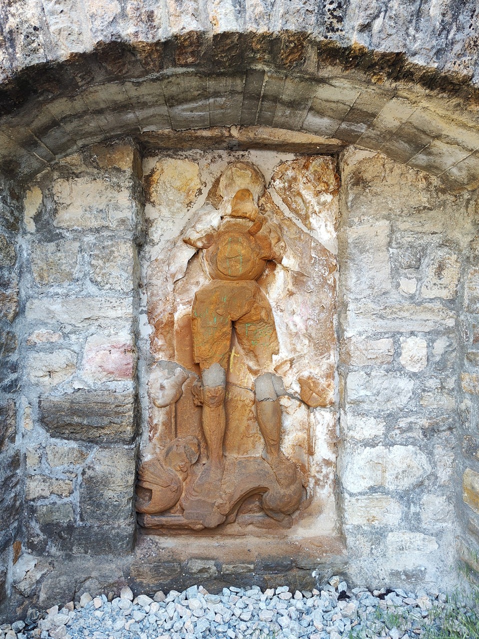 Ritterfigur in der Wehrmauer