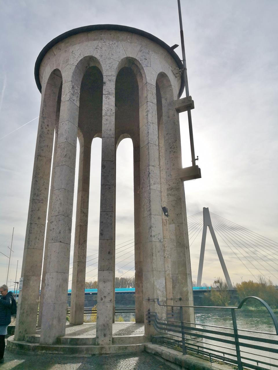neuwied_okt_2021_026_960x1280 ← Zurück Weiter → Pegelturm auf dem Rheindeich dahinter der Pylon der Raiffeisenbrücke