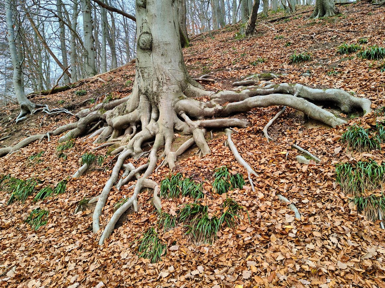 Mächtiges oberirdisches Wurzelwerk einer Buche