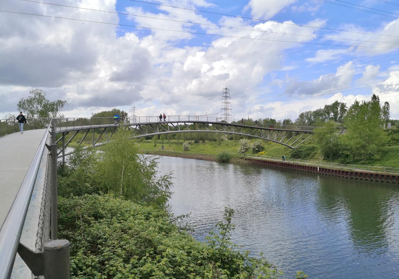 oberhausen_mai_2021_077_1280x895 ← Zurück Weiter → Waghalsbrücke über den Rhein-Herne-Kanal am Gehölzgarten Ripshorst