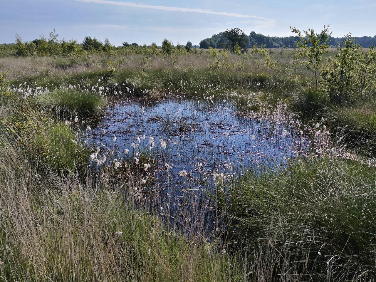 oppenweher_moor_jun_2021_041_1280x960 ← Zurück Weiter → Typisches Landschaftsbild im Opperweher Moor: Wollgras an einem moorigen Tümpel