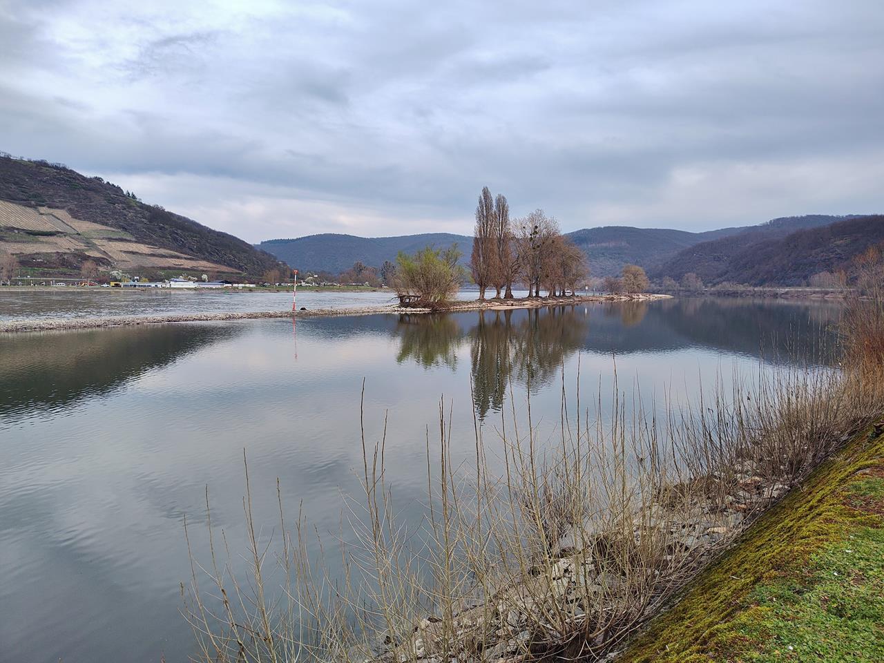 Ganz ruhig liegt das Rheinwasser im Ritt da