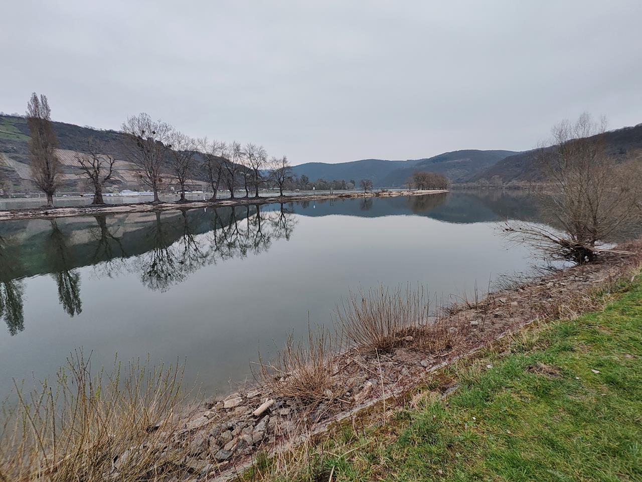 Ganz ruhig liegt das Rheinwasser im Ritt da