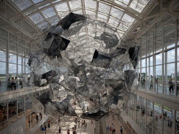 Neu aus der KI auf meiner Festplatte: Frisch imaginierte Installationen in der Art von Tomás Saraceno (*1973).