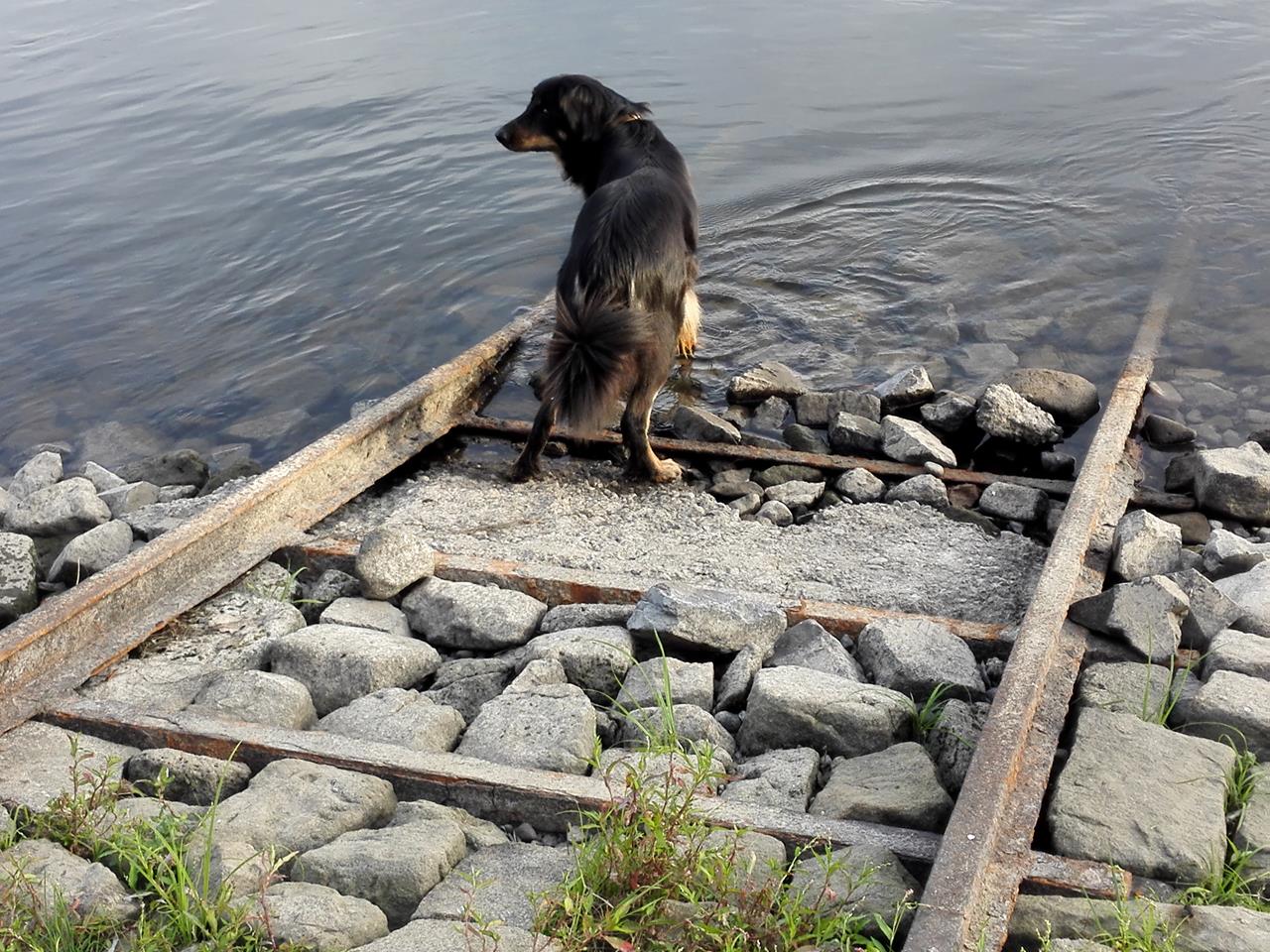 Doxi prüft erst Mal die Wasserqualität der Elbe.