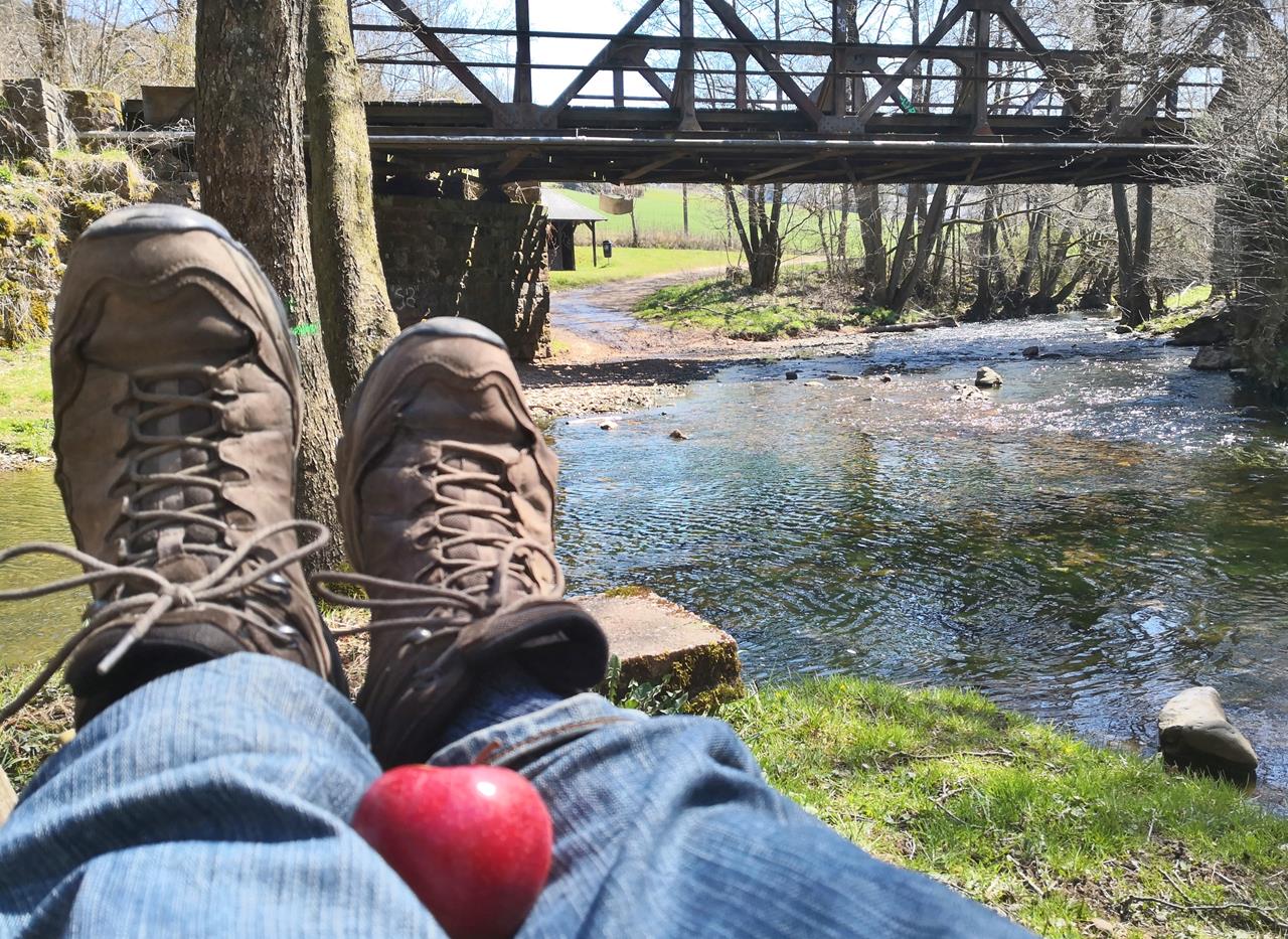 Wanderpause an der Prüm kurz vor der Dausfelder Mühle