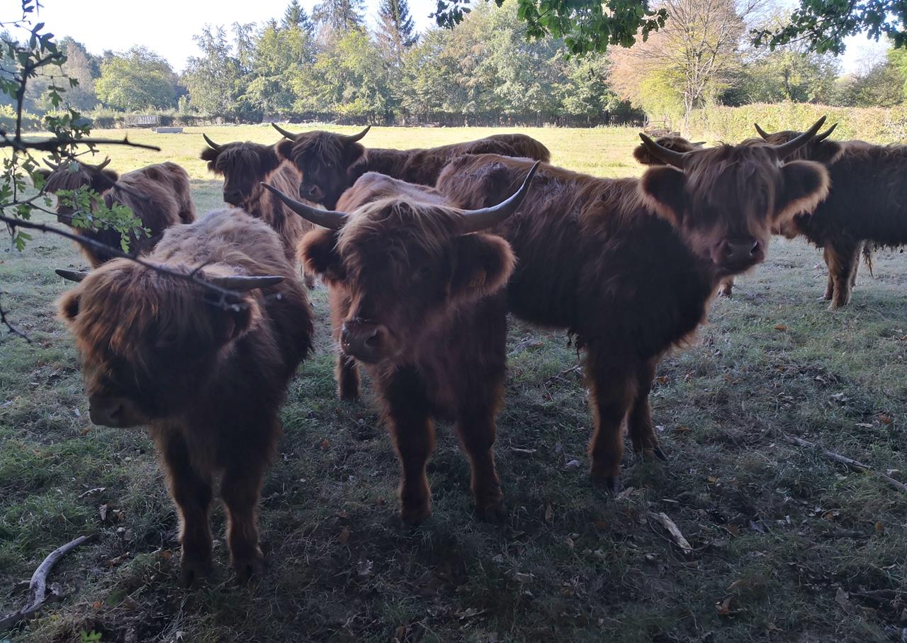 Süße Galloway-Rinder kurz vor Raeren