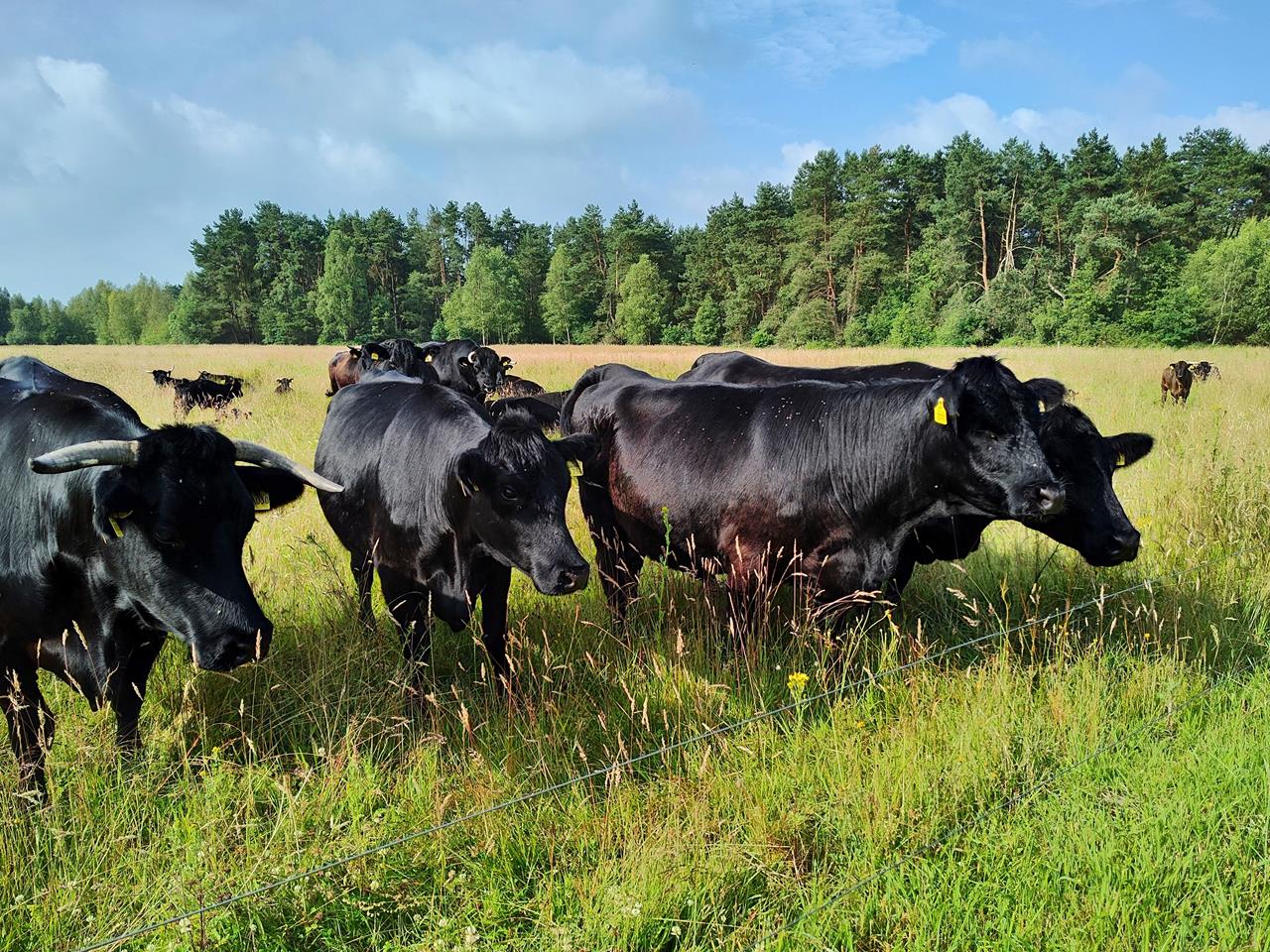 Neugierige Rindviecher am Rande des Gebiets