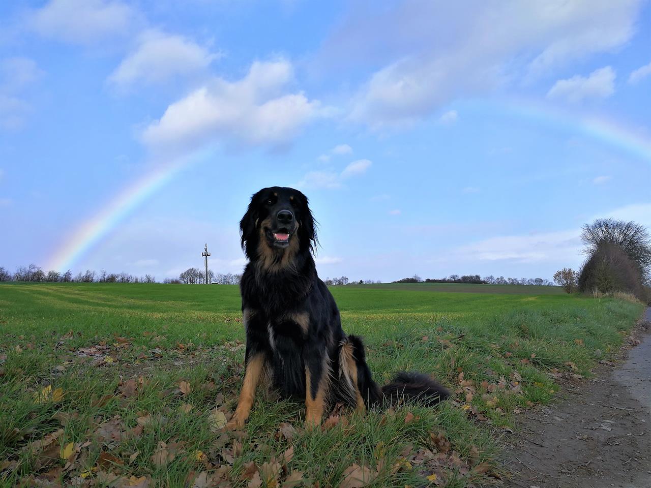 November 2017: Doxi im Regenbogen bei einer Moselwanderung nahe Cochem