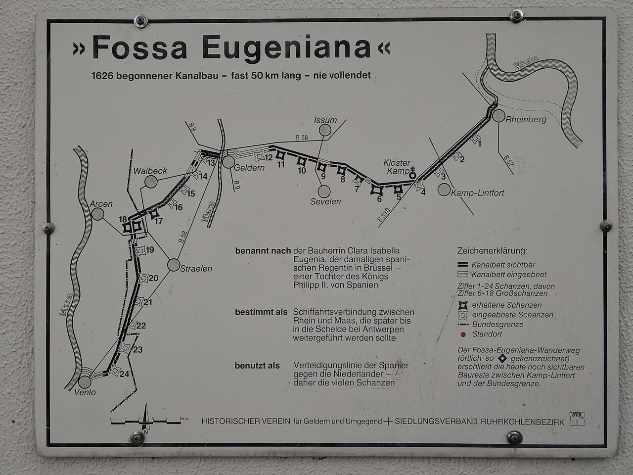 ← Zurück Weiter → Infotafel zur Fossa Eugenia, einem nie fertiggstellen Kanalbauprojekt aus dem 17. Jahrhundert
