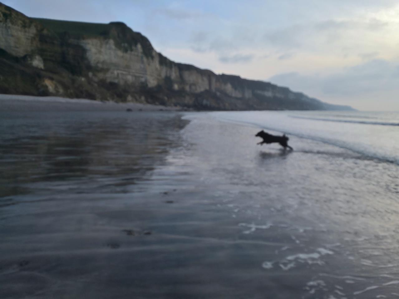 Doxi rast über den Strand
