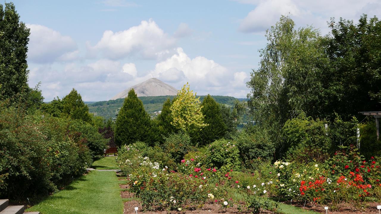 sangerhausen_apr_2019_101_1280x720 ← Zurück Weiter → Blühende Rosen überall, dahinter die Abraumhalde „Hohe Linde“ (Foto Geolina163 | http://commons.wikimedia.org | Lizenz: CC BY-SA 4.0 DE)