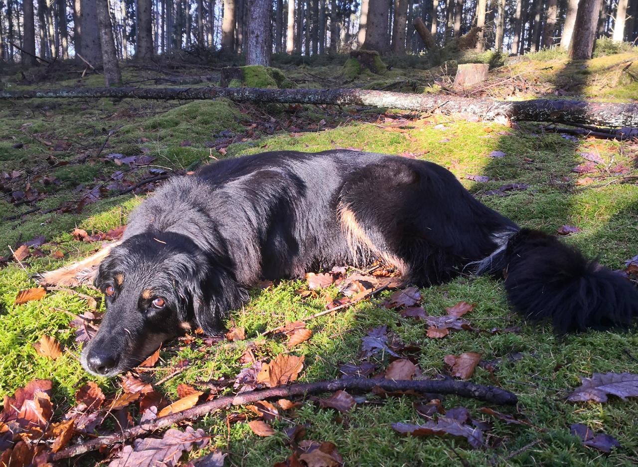schmithof_nov_2021_017_1280x938 ← Zurück Weiter → Doxi genießt es, sich auf dem weichen Moosboden auszustrecken