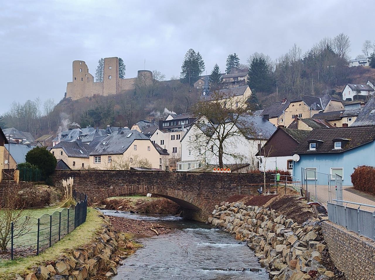 Blick über die Nims zur Burg Schönecken