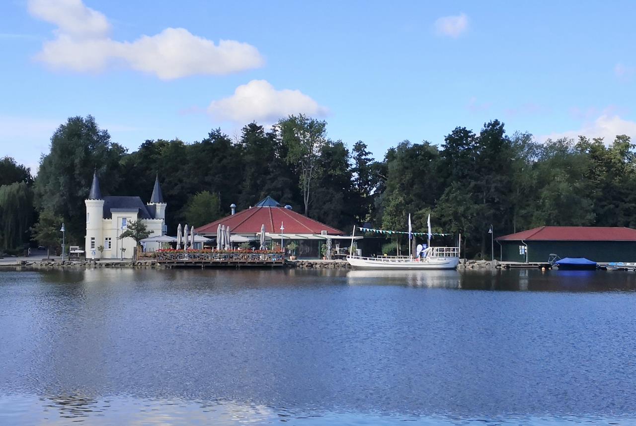 schwalmtal_aug_2020_008_1280x858 ← Zurück Weiter → Das „Insel-Schlösschen“ mit Gastronomie, Ausflugsschiff und Bootsverleih am Hariksee