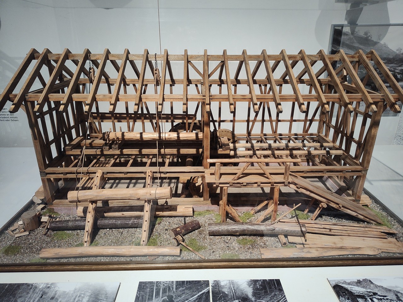 schwarzwald_freilichtmuseum_mai_2025_063_1280x960 ← Zurück Weiter → Rahmenkontstruktion der Sägemühle im Museum
