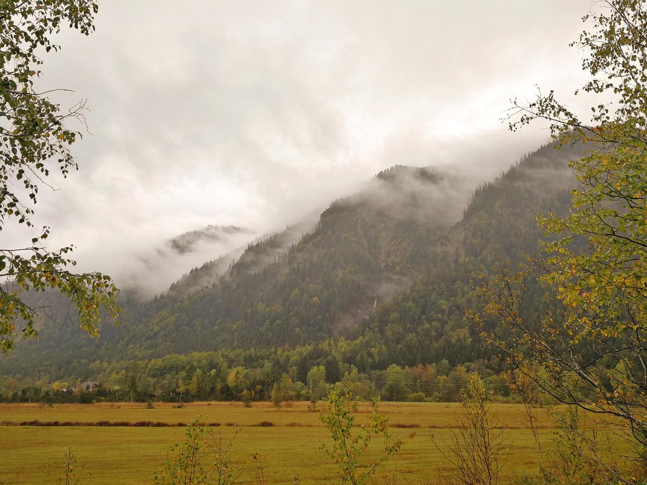 Blick über das Moos in Richtung der Ettaler Mühle. Dahinter der Ziegelspitz.