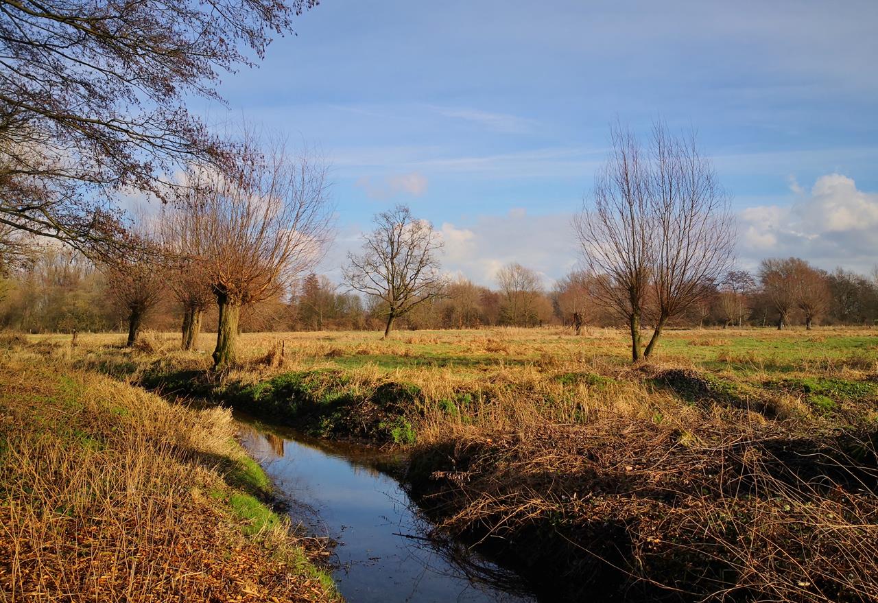 Als die Sonne herauskommt, wirkt die Winterlandschaft plötzlich ganz herbstlich