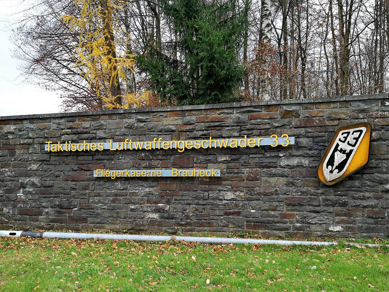 ← Zurück Weiter → Oben auf den Moselhöhen kommen wir an der Brauheck-Kaserne vorbei, wo das Taktische Luftwaffengeschwader 33 stationiert ist