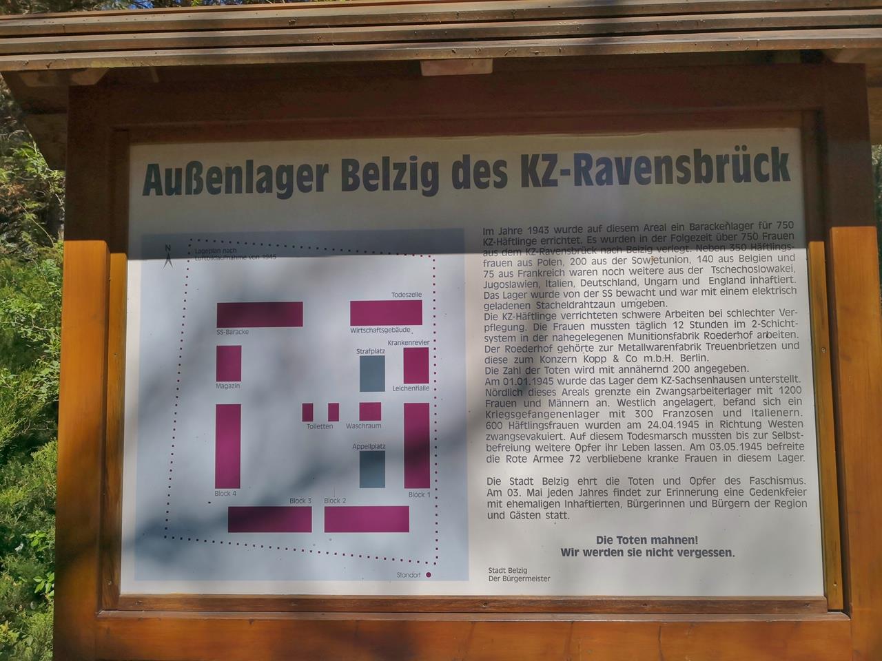 Gedenktafel am ehemaligen Außenlager des KZ-Ravensbrück