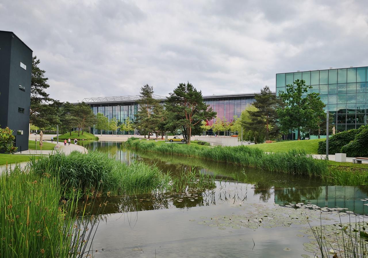 Kleiner Wasserfall vor der VW-Konzernhalle