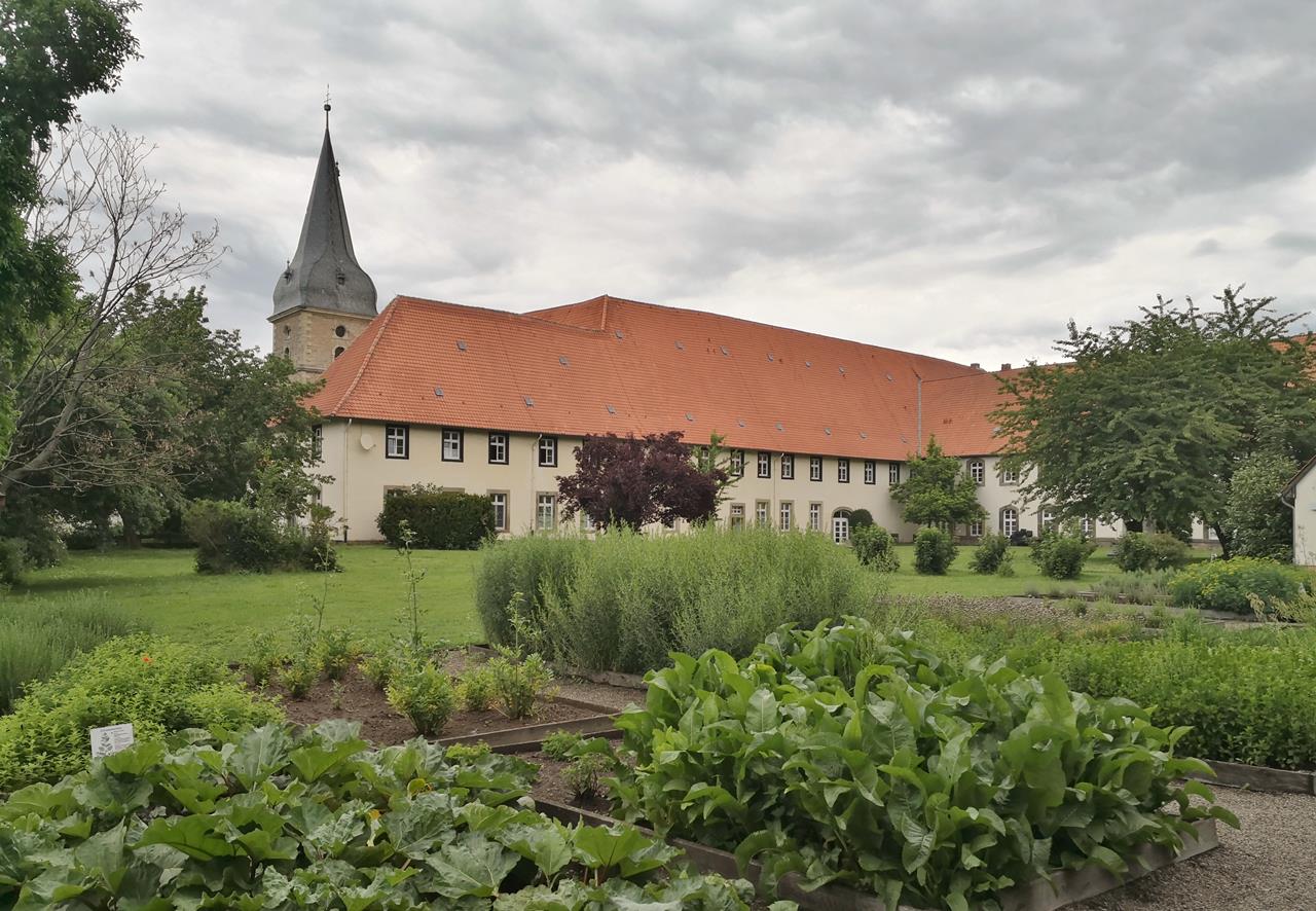 Blick aus dem Klosterkräutergarten auf das Hotel