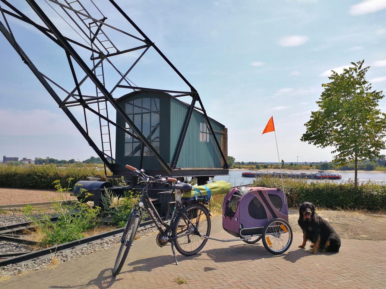 Juli 2018: Doxi’s rollende Sänfte bei Elten am Rhein